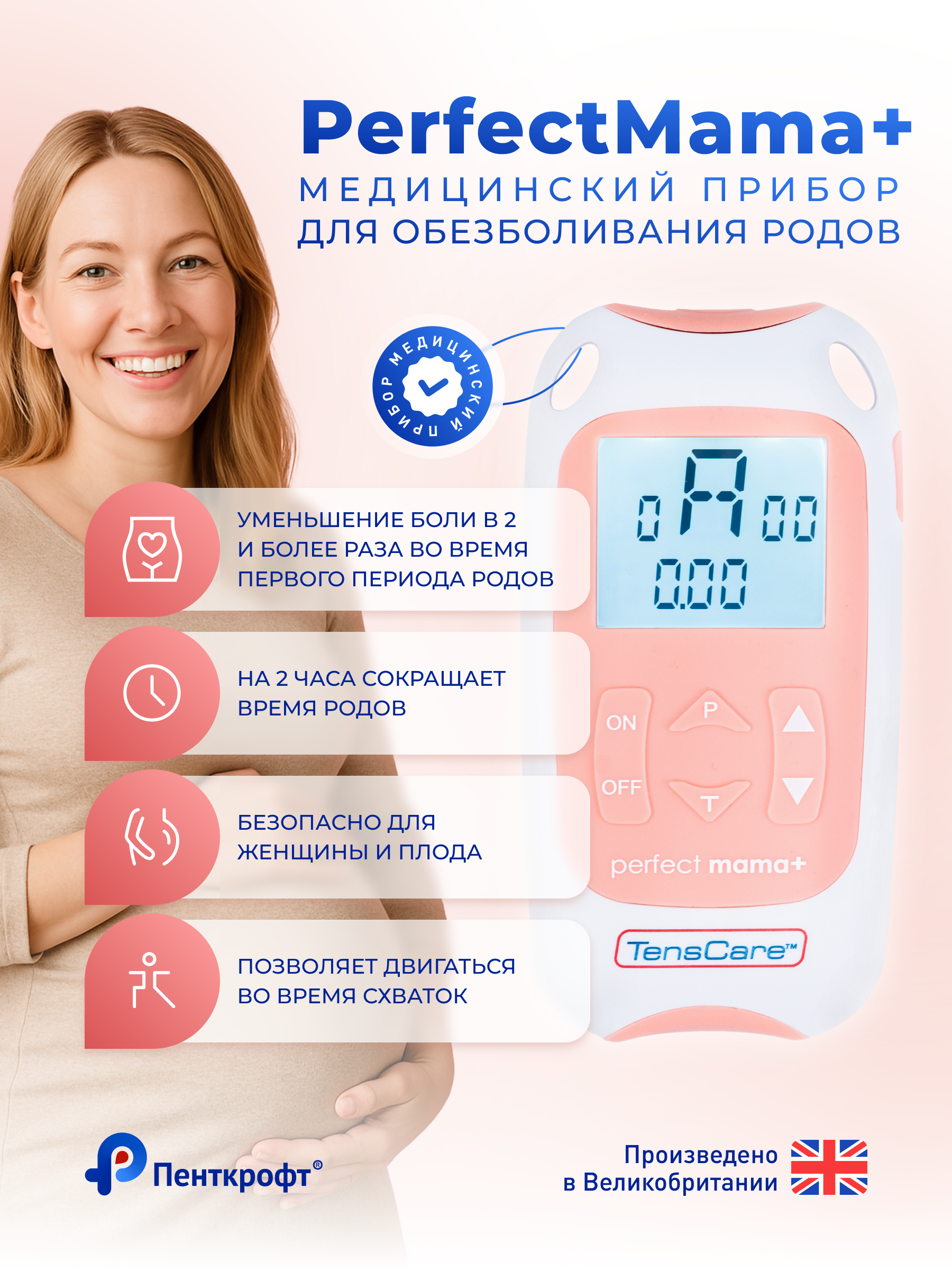 Это верное решение. Электростимулятор Perfect mama+ для снятия боли в родах и в послеродовом периоде (пр-во Англия) – это инновационный медицинский прибор, позволяющий роженице управлять болью в родах. Прибор блокирует передачу нервного импульса в центральную нервную систему от матки и промежности, таким образом снижая болевые ощущения, а также стимулирует двигательные нервы, создавая небольшие повторяющиеся сокращения мышц. Это воспринимается мозгом как упражнение и способствует выделению эндорфинов - естественных болеутоляющих средств [17].